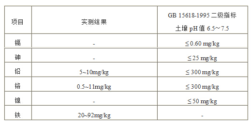 盡管國標(biāo)GB 535—1995注明“硫酸銨作物農(nóng)業(yè)用時可不檢驗鐵、砷、鉛、鉻等重金屬含量等指標(biāo)”,但為慎重起見,在上述測試時對副產(chǎn)物硫銨進(jìn)行重金屬含量檢測,實測值如下: